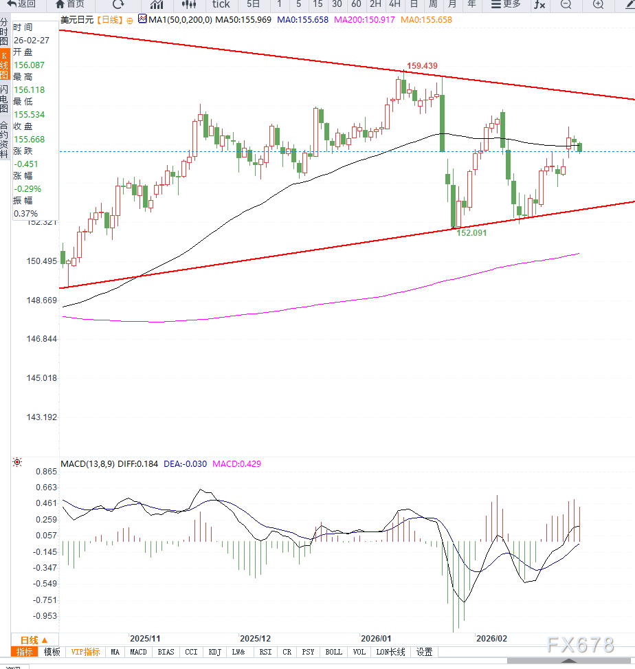 汇通财经APP讯——USD/JPY在亚洲时段连续第二个交易日回落,价格下探至155.65附近,但整体仍维持周线级别上涨结构。近期日元表现主要受到日本央行政策预期与通胀数据变化影响。