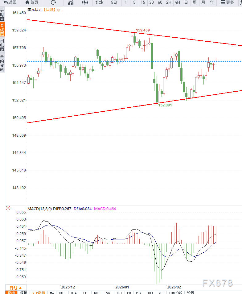 汇通财经APP讯——2月27日周五,美元兑日元美市盘前正卡在155.90的微妙位置,仿佛被一只无形的手按在了156附近的震荡区间里动弹不得。回顾近期的日线走势,汇价从前期高点159.439一路回落,在...