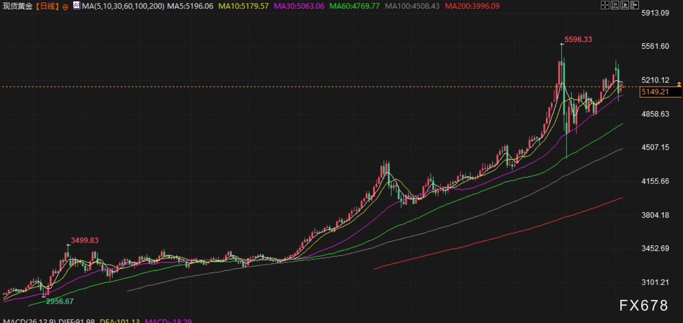 金价周三上涨,中东冲突升级吸引了避险买盘,同时美元在经历周二大幅上涨后涨势暂歇,为金价提供了支撑。现货黄金收报每盎司5120.71美元,上涨0.7%。