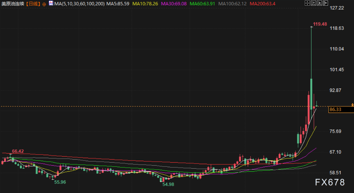 布伦特原油期货收于每桶87.80美元,美原油收报86.39美元,双双在创下四年新高后大幅回调。尽管战场上未见缓和,美以甚至对伊朗发动了开战以来最猛烈的空袭,但特朗普的言论以及白宫随后澄清尚未护航商船通过霍尔木兹海峡的消息,都加剧了市场的剧烈波动。