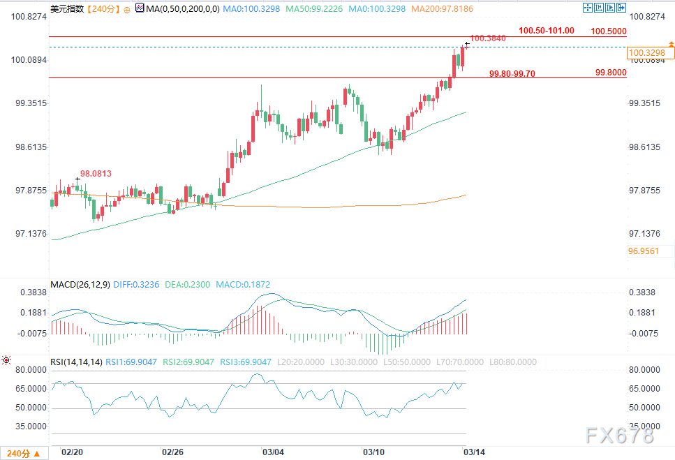 汇通财经APP讯——3月13日周五,美元指数升至100.20附近,单日涨幅约0.4%,接近近期峰值区间。与此同时,国际油价维持高位,布伦特原油报价约101美元/桶,西德克萨斯中间基原油约96美元/桶。...