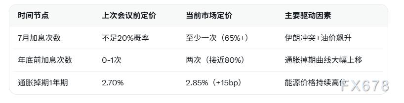 汇通财经APP讯——根据 汇通财经APP 报道,德意志银行经济学家预计欧洲央行将维持利率不变,但会承认因伊朗冲突和油价飙升导致的更大不确定性以及近期限通胀上行风险。市场目前已定价至少7月一次欧洲央行加息以及年底前两次,通胀掉期曲线全线大幅上移。