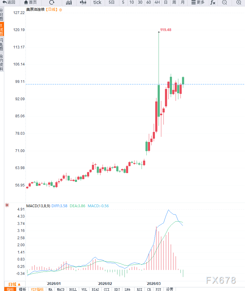 汇通财经APP讯——本周一,WTI原油价格延续上周强劲涨势,开盘后迅速上冲并一度突破100美元整数关口,显示市场情绪在周末事件发酵后明显转向紧张。此前周五油价已上涨约3.5%,而本轮进一步上行,主要受到中东局势急剧升级的推动。