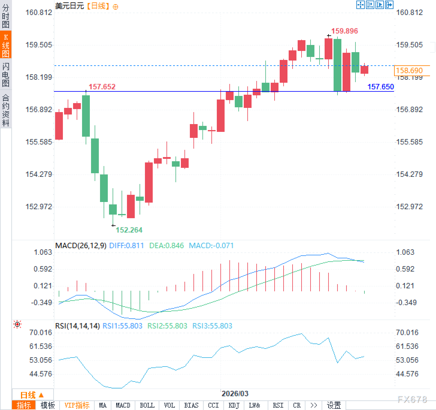 汇通财经APP讯——3月24日周二,美元兑日元汇率继续在160整数关口下方盘整,目前交投于158.70附近,短期支撑位维持在157.65一线,阻力则集中在159.80区域。市场焦点迅速转向美国与伊朗谈判的最新进展,特朗普通过社交媒体宣布五天停火以推动全面解决敌对状态,但伊朗方面迅速否认任何实质对话,导致美元短暂走弱后迅速回稳,汇价呈现明显的区间震荡特征。这一地缘政治不确定性叠加日本最新通胀数据疲软,共同塑造了当前美元兑日元的市场格局,交易员正密切评估风险情绪与央行政策分化的交互影响。