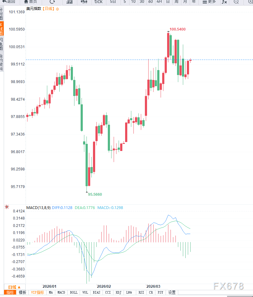 汇通财经APP讯——美元指数在前期连续反弹后出现小幅回落,当前运行于99.60附近,显示出短期上涨动能有所放缓。尽管整体仍处于相对高位,但市场在多重宏观因素交织下,开始进入阶段性整理状态。