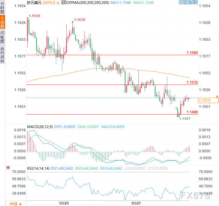 汇通财经APP讯——周一(3月30日)亚欧时段,欧元兑美元于1.1510附近窄幅震荡,短期呈现震荡格局。地缘政治风险持续升温,避险属性较强的美元获得支撑,持续较高位运行,成为压制欧元兑美元上行的主要因素。