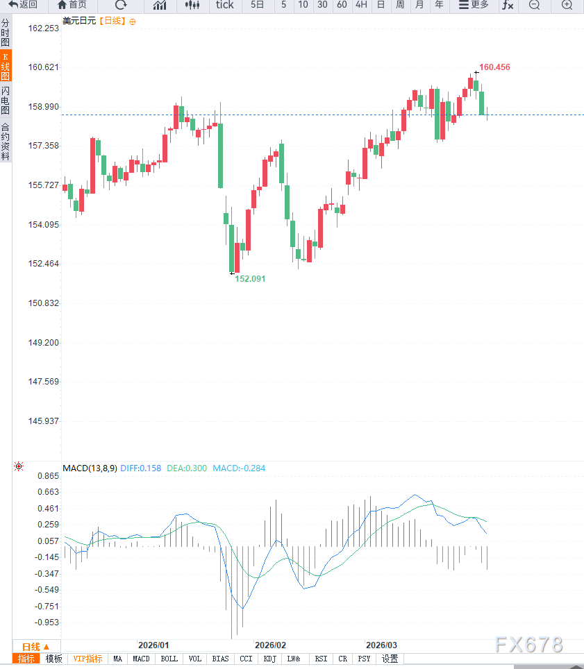 汇通财经APP讯——周三亚洲时段,美元兑日元自一周低点附近小幅反弹,但整体表现依然偏弱,汇价维持在159.00下方震荡运行。当前市场处于观望状态,主要围绕中东局势变化及即将公布的美国关键经济数据进行定价。