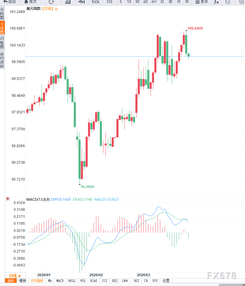汇通财经APP讯——周三亚洲时段,美元指数延续回落走势,运行于99.80附近,已连续第二个交易日走弱,并再度跌破100关键整数关口。当前美元走势的核心驱动来自避险需求下降以及货币政策预期的变化。
