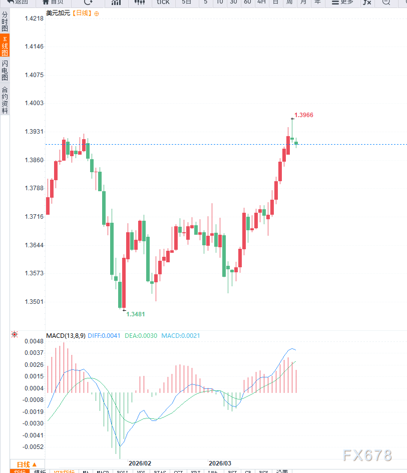 汇通财经APP讯——周三市场整体呈现风险偏好回升但仍偏谨慎的状态,美元指数小幅走弱,而加元则相对坚挺。推动这一变化的核心因素在于中东局势出现缓和预期。美国总统特朗普表示,美国可能在两到三周内结束对伊朗的军事行动,并暗示即使没有达成协议也将撤出冲突,同时认为霍尔木兹海峡在美方撤出后将恢复通行。这一表态提升了市场对冲突降温的预期,避险情绪有所回落,从而对美元构成压力。