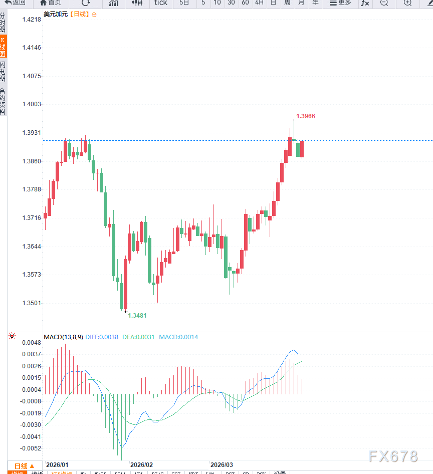 汇通财经APP讯——美元兑加元在亚洲时段出现反弹,汇价回升至1.3900附近,结束此前连续两日的回落走势。市场情绪的变化成为推动本轮反弹的核心因素,美国总统Donald Trump的最新讲话未释放出明确的地缘缓和信号,使得避险情绪重新升温,从而支撑美元走强。