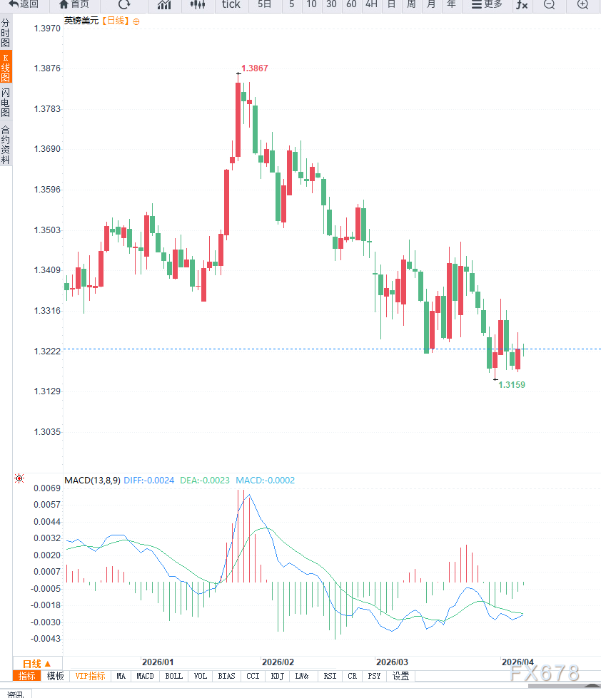 汇通财经APP讯——周二亚洲时段,GBP/USD回落至1.3220附近,此前反弹动能有所减弱。整体来看,汇价在多重因素影响下呈现震荡整理格局,短期方向尚不明朗。