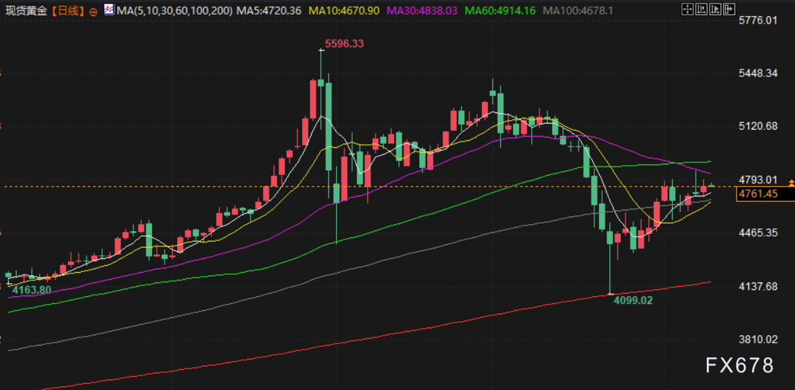 金价周四上涨逾1%,现货黄金收涨1.6%至每盎司4789.67美元,美国期金上涨0.9%至4818.00美元,主要受美元走软支撑,同时投资者评估美伊脆弱停火协议的持久性并等待周五公布的美国3月CPI数据。