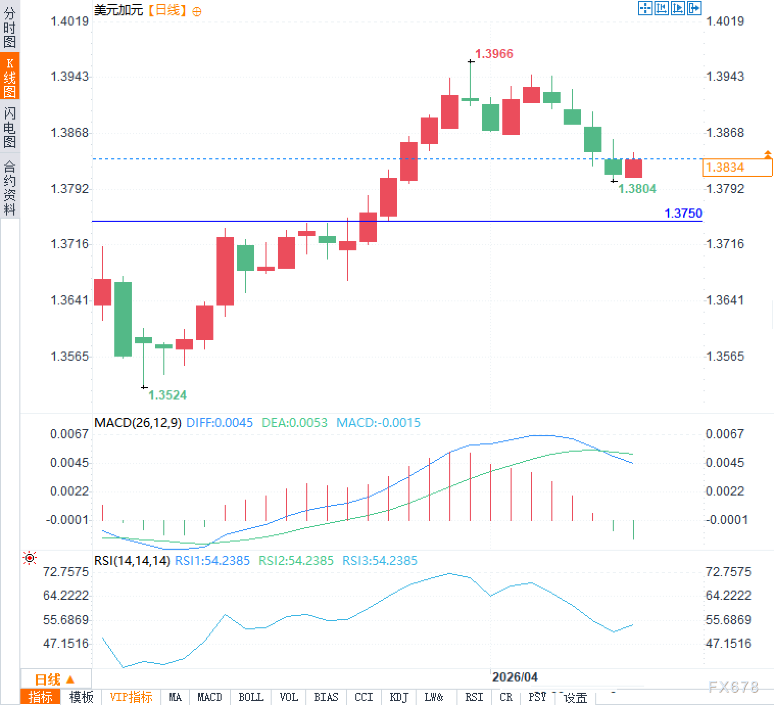汇通财经APP讯——美元兑加元4月10日周五欧洲时段交投于1.383附近,此前因美伊双方达成两周停火协议而从高位显著回调,但仍逼近1.390的关键阻力区间。市场焦点迅速转向稍后将公布的加拿大就业数据以及周六在伊斯兰堡举行的美伊和平谈判。停火协议虽暂时缓解地缘紧张,但黎巴嫩境内持续的袭击事件以及霍尔木兹海峡通航的不确定性,仍令全球风险情绪保持谨慎。