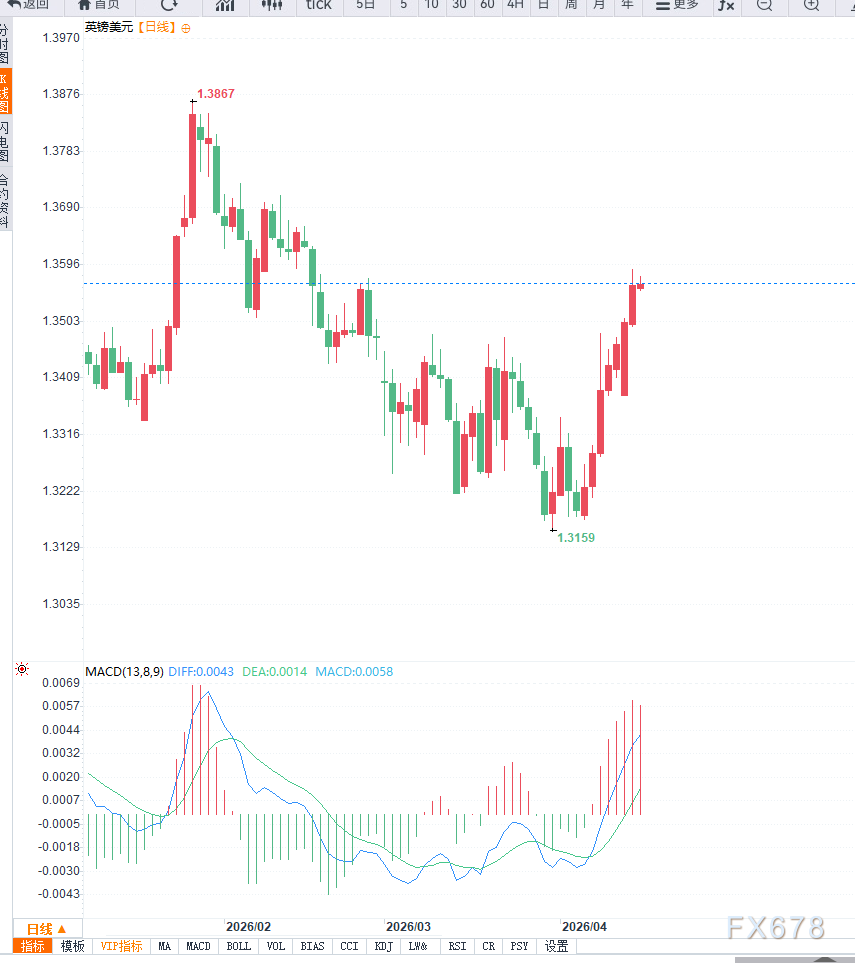 汇通财经APP讯——英镑/美元在周三亚洲时段结束此前连续七个交易日的上涨走势,回落至1.3560附近。从整体结构来看,汇价在强势上涨后进入技术性修正阶段,多头动能有所放缓,但趋势尚未完全转弱。