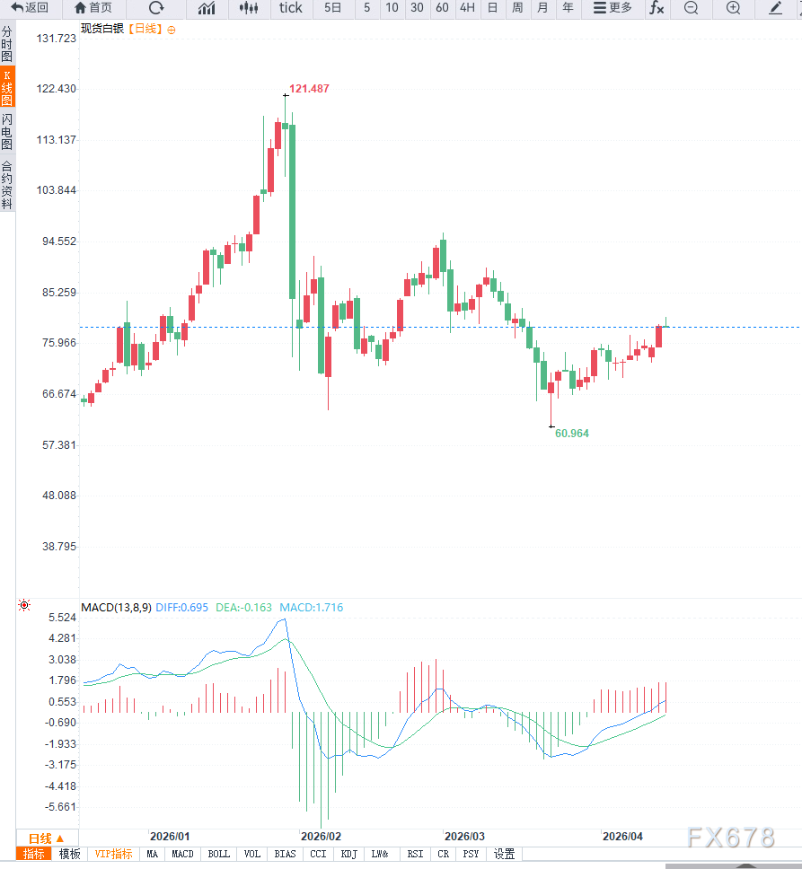 汇通财经APP讯——白银在周三欧洲时段震荡回落,价格自81美元附近遇阻后回落至79.50附近运行。整体来看,短线反弹动能有所减弱,但中期结构尚未被破坏,市场处于多空博弈阶段。