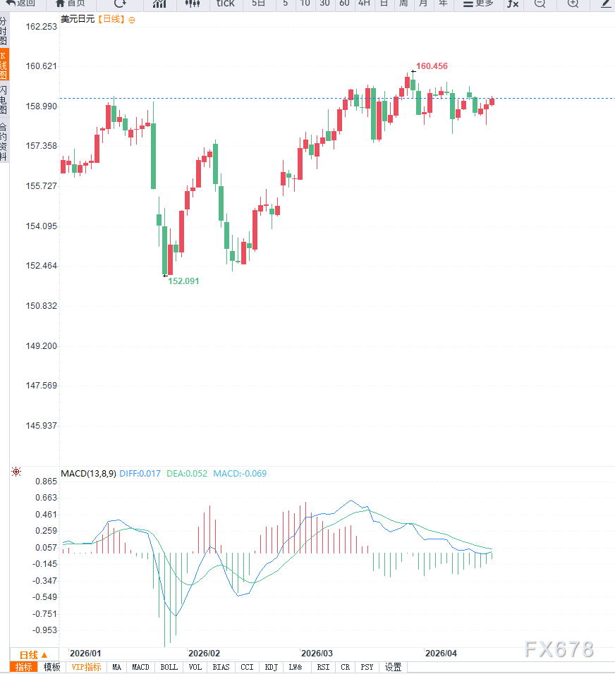 汇通财经APP讯——4月16日周四,美元兑日元汇率波动加剧,盘中最低触及158.26,随后小幅回升,目前交投于158.8至159.0区间。尽管美元指数近期出现显著回调,但日元仍相对疲弱,汇率持续逼近1...