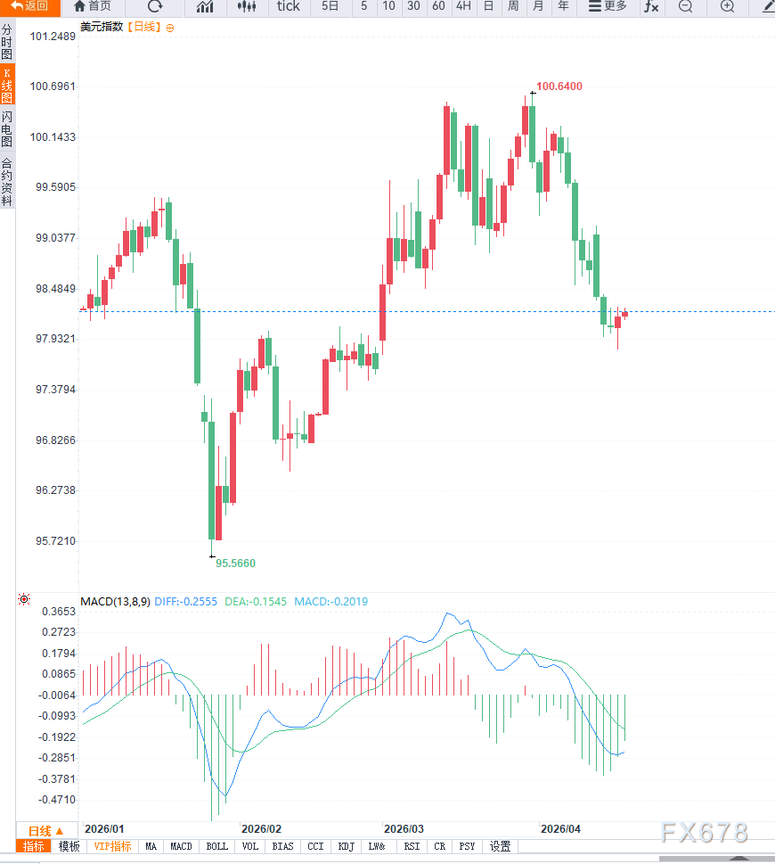 汇通财经APP讯——周五亚洲交易时段,美元指数运行于98.25附近,整体表现平稳。当前市场处于典型的“预期消化+等待催化”阶段,多空因素交织,使美元走势暂时缺乏明确方向。