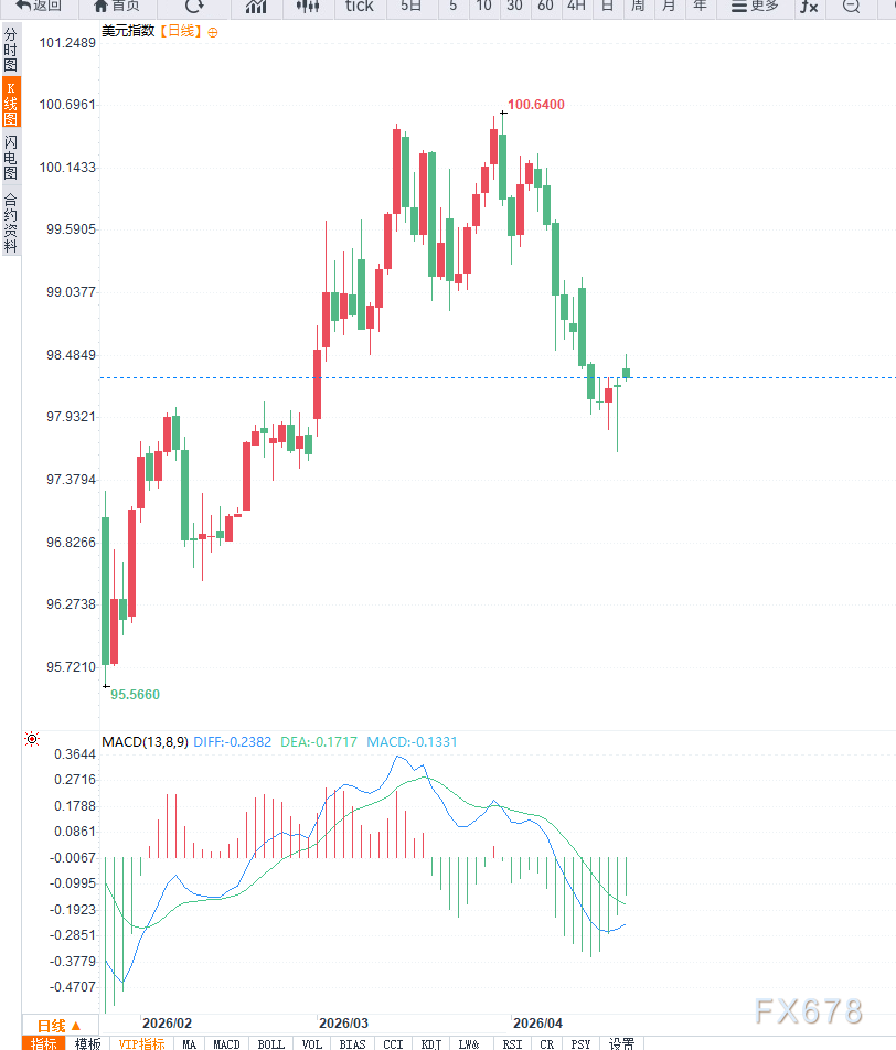 汇通财经APP讯——美元指数在周一亚洲时段小幅走高,当前交投于98.30附近,延续此前反弹走势。整体来看,美元近期表现主要受避险情绪与宏观预期双重驱动,在全球不确定性上升背景下维持相对强势。