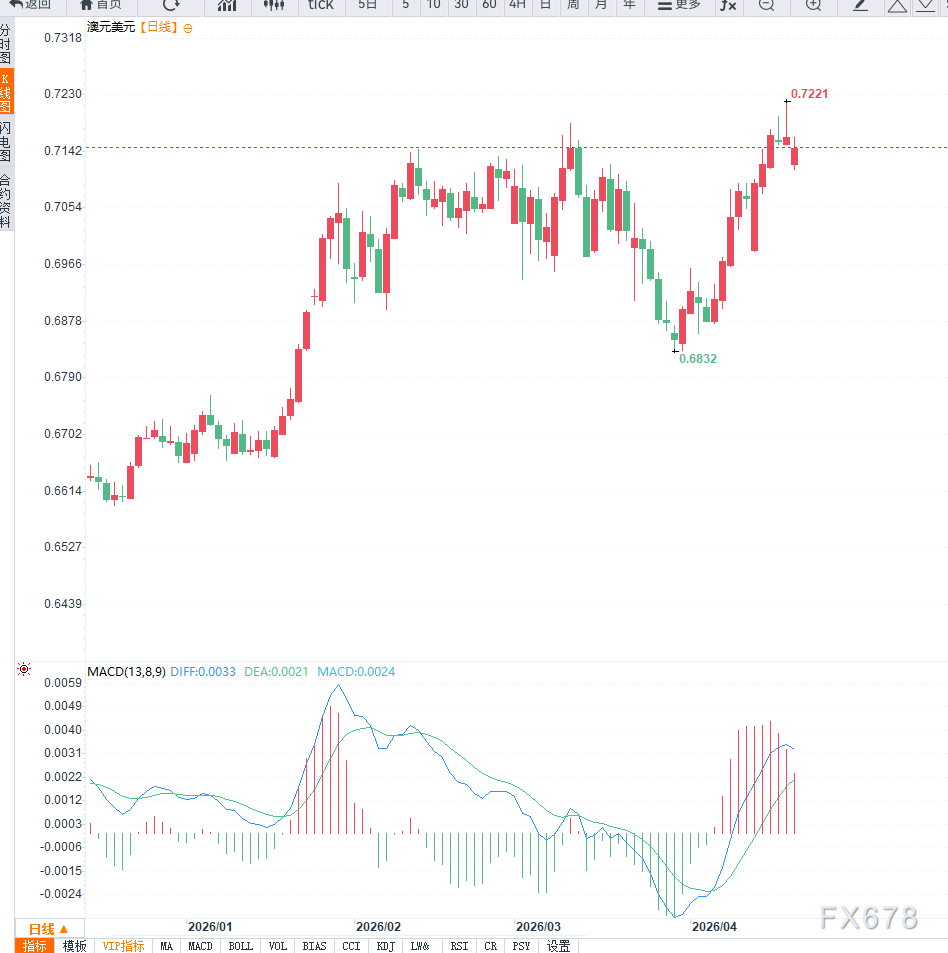 汇通财经APP讯——澳元兑美元在周一亚洲时段自低点反弹,汇价回升至0.7150附近,摆脱早盘触及的0.7132低位。尽管出现技术性反弹,但整体仍运行在前期高点0.7200下方,显示上行动能仍受到限制。