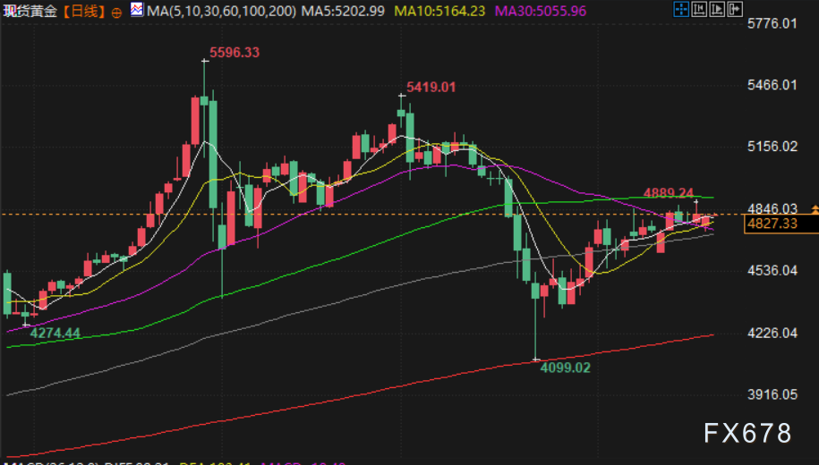 金价周一触及一周最低,现货黄金下跌0.4%至每盎司4810.26美元,盘中曾创下4月13日以来新低,美国期金收跌1%报4828.8美元,主要因美伊局势再度紧张:美国扣押一艘伊朗货轮后,伊朗威胁报复,导致美元指数一度升至近一周最高、10年期美债收益率上涨。