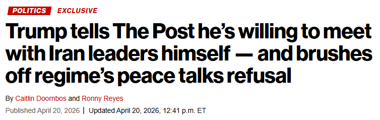 FX168财经报社(北美)讯 在美伊停火协议即将到期之际,美国总统特朗普表示,如果谈判取得突破,他愿意亲自与伊朗高层会面,以推动达成协议。特朗普周一(4月20日)在接受《纽约邮报》采访时表示:“如果他...