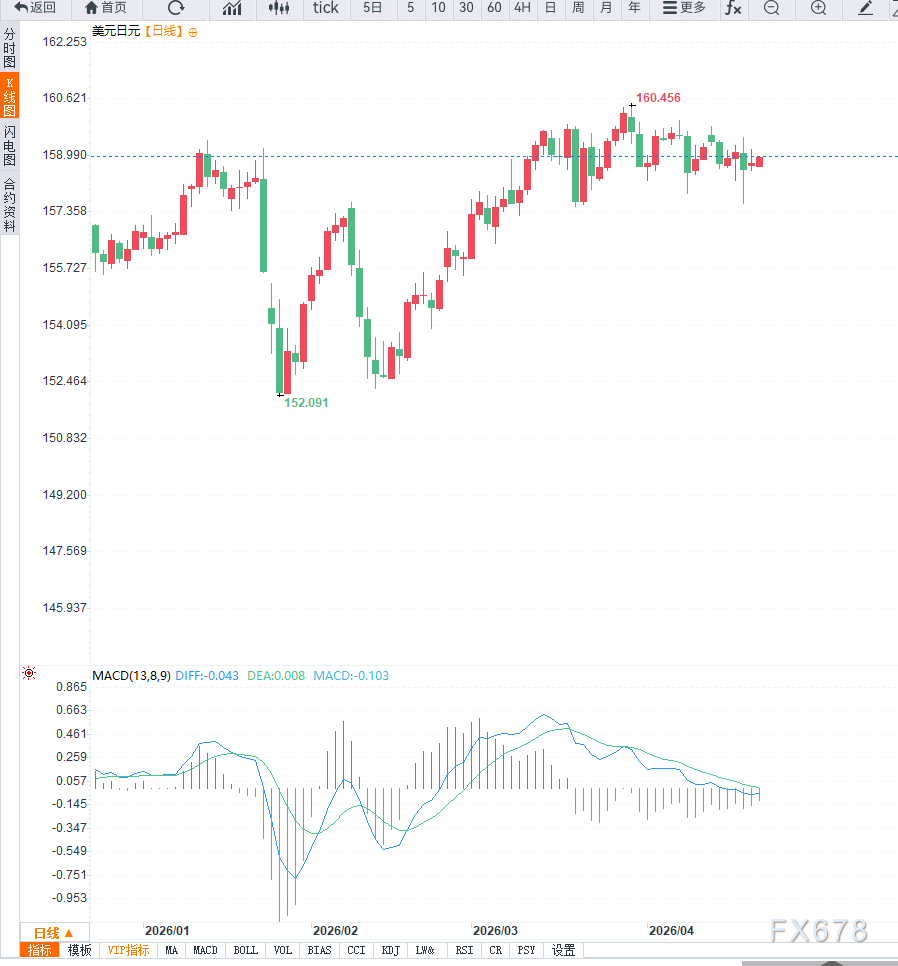 汇通财经APP讯——周二亚盘时段,美元兑日元(USD/JPY)延续反弹走势,回升至159.00附近,收复前一交易日部分跌幅。不过,从整体走势来看,汇价仍运行于过去一个月形成的震荡区间内,市场方向尚不明朗。