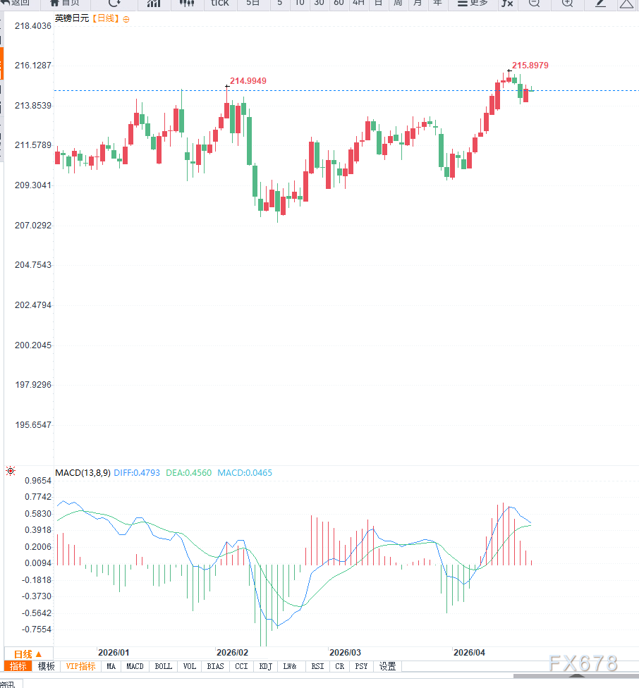 汇通财经APP讯——周二欧洲时段,英镑兑日元(GBP/JPY)延续震荡整理走势,交投于215.00关口下方,整体波动有限。尽管前一交易日自低位反弹,但上行动能未能延续,市场表现出明显的观望情绪。