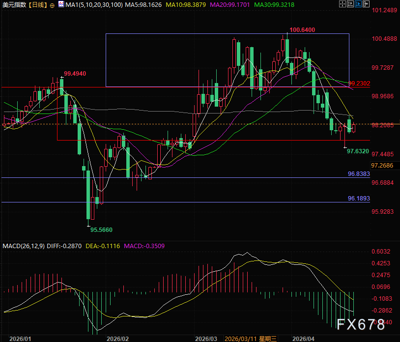 之前市场对中东缓和的乐观预期持续压制美元上行,美元指数再度逼近98.000关口;