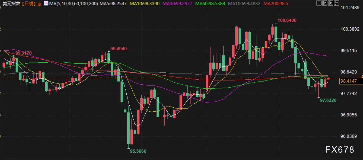 美元指数周二上涨0.36%报98.43,升至一周高点,因美伊停火前景不确定性加剧,投资者担忧霍尔木兹海峡航运中断可能持续。在停火期限仅剩一天之际,美军在海上登上一艘伊朗油轮,伊方随后表示尚未决定是否参加和平谈判;同时白宫官员称美国副总统万斯尚未启程前往巴基斯坦,此前关于其行程的矛盾消息令市场动荡。