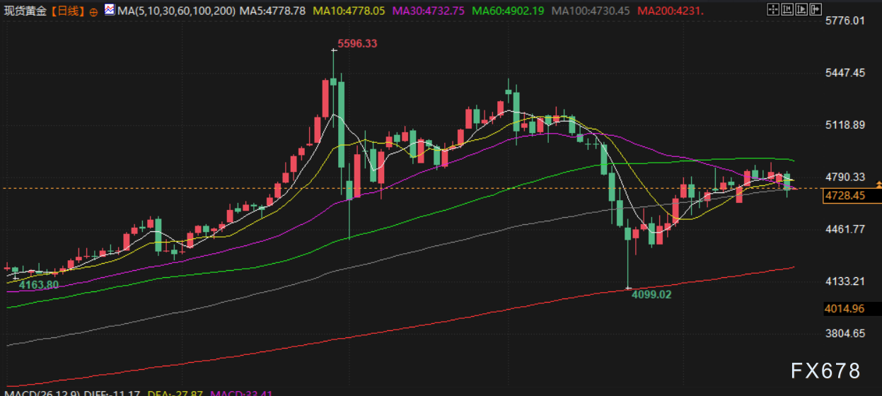 金价周二延续跌势,现货黄金下跌2.2%至每盎司4712.04美元,创逾一周新低,美国期金收跌2.3%至4719.60美元,主要受累于美元上涨0.2%及指标10年期美债收益率攀升,同时投资者密切关注美伊潜在会谈结果及美联储主席提名人沃什的确认听证会。
