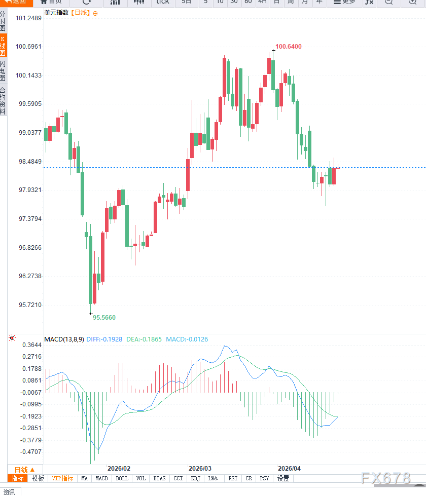 汇通财经APP讯——周三亚洲交易时段,美元指数维持稳定,运行于98.40附近。在前一交易日小幅上涨后,美元整体表现仍显稳健,市场情绪在基本面支撑与地缘不确定性之间保持平衡。
