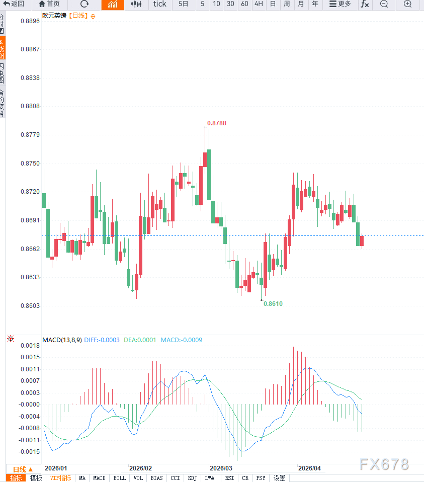 汇通财经APP讯——周四欧洲早盘,欧元兑英镑(EUR/GBP)温和走高,交投于0.8675附近。尽管汇价出现反弹,但整体上涨动能有限,主要受到英国通胀数据走强所带来的政策预期影响。