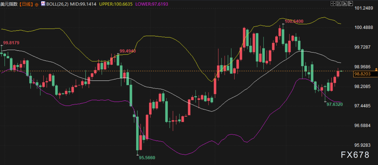 美元指数周四小幅走高,上涨0.11%报98.73,本周有望录得周线涨幅,主要因伊朗与美国之间紧张局势加剧,削弱了达成和平停火的希望。伊朗发布特种部队突袭巨型货轮的视频展示其对霍尔木兹海峡的控制权,以色列则警告已准备好重启袭击,市场难以判断停火能维持多久,避险需求推动美元走强。