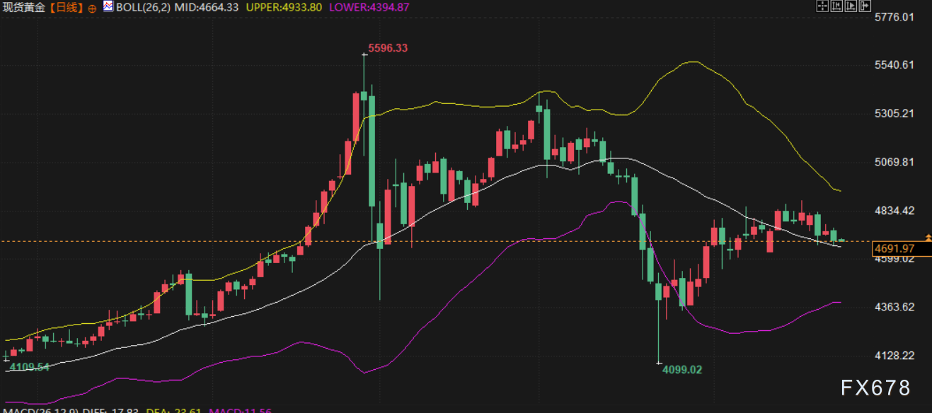 汇通财经APP讯——周五(北京时间4月24日)亚市早盘,现货黄金交投于4687美元/盎司附近,日内或测试4650美元/盎司关口,美伊谈判陷入僵局,伊朗谈判代表辞职,特朗普称对伊“不想仓促行事” 仍保留军事选项;受益于伊朗局势再次紧张,油价上涨超4%,美原油交投于97美元/桶上方。