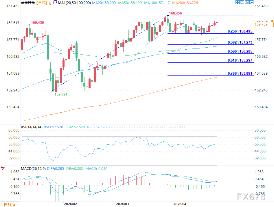 汇通财经APP讯——周五亚洲时段,美元兑日元延续上行走势,交投于159.80附近,触及近两周高点。汇价已连续五个交易日上涨,并有望录得显著周线涨幅,显示市场整体偏向多头结构。 src=http://c...