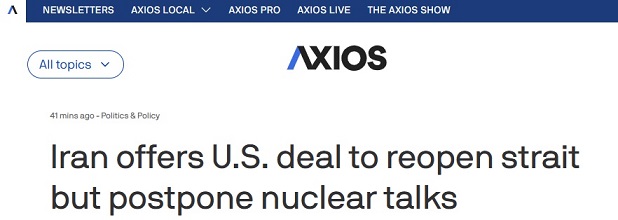 #伊朗危机追踪#FX168财经报社(亚太)讯 美国新闻网站Axios当地时间周日(4月26日)晚间最新报道称,据一名美国官员及两位知情人士透露,伊朗向美国提出了一项新方案,旨在重新开放霍尔木兹海峡并结...