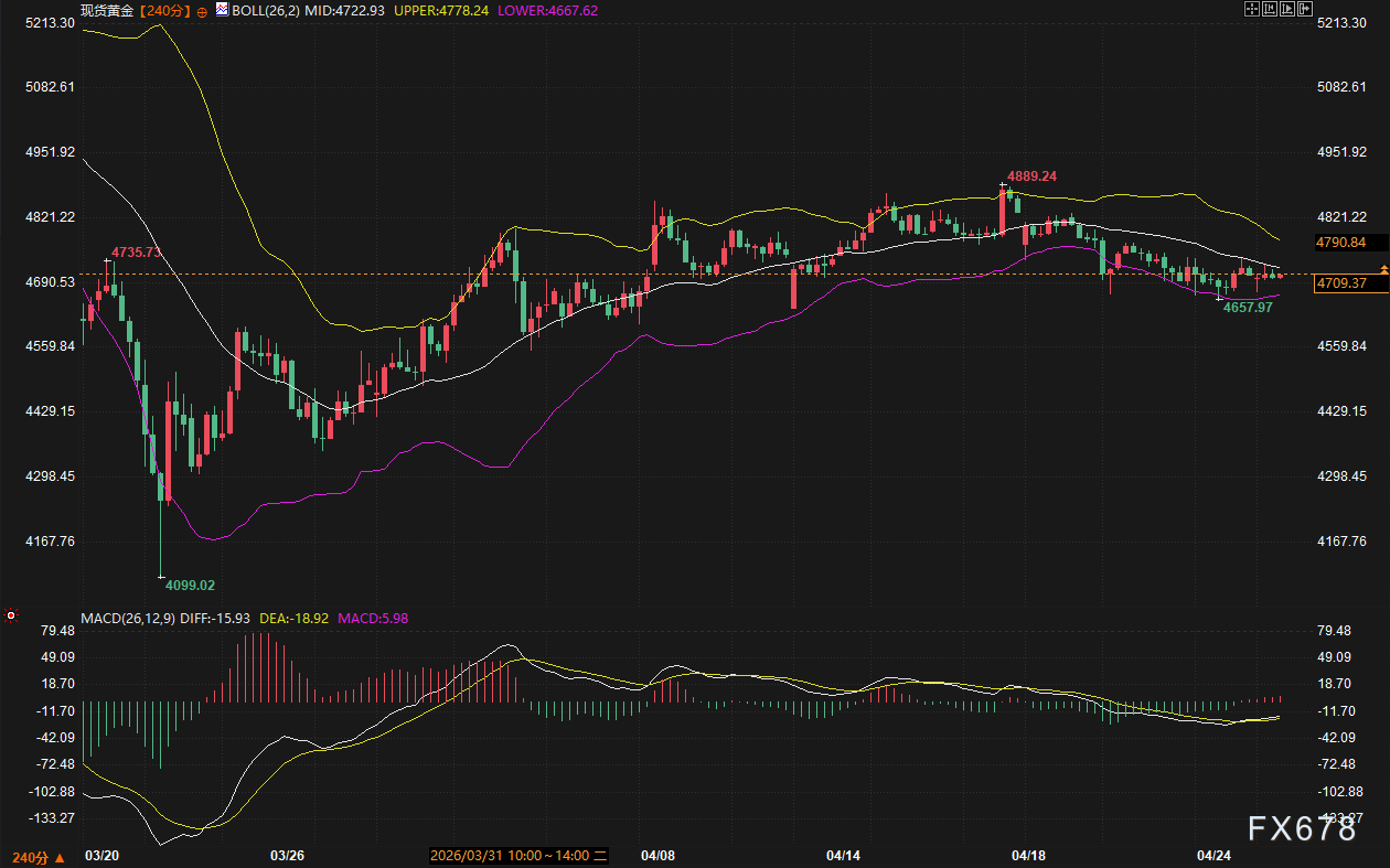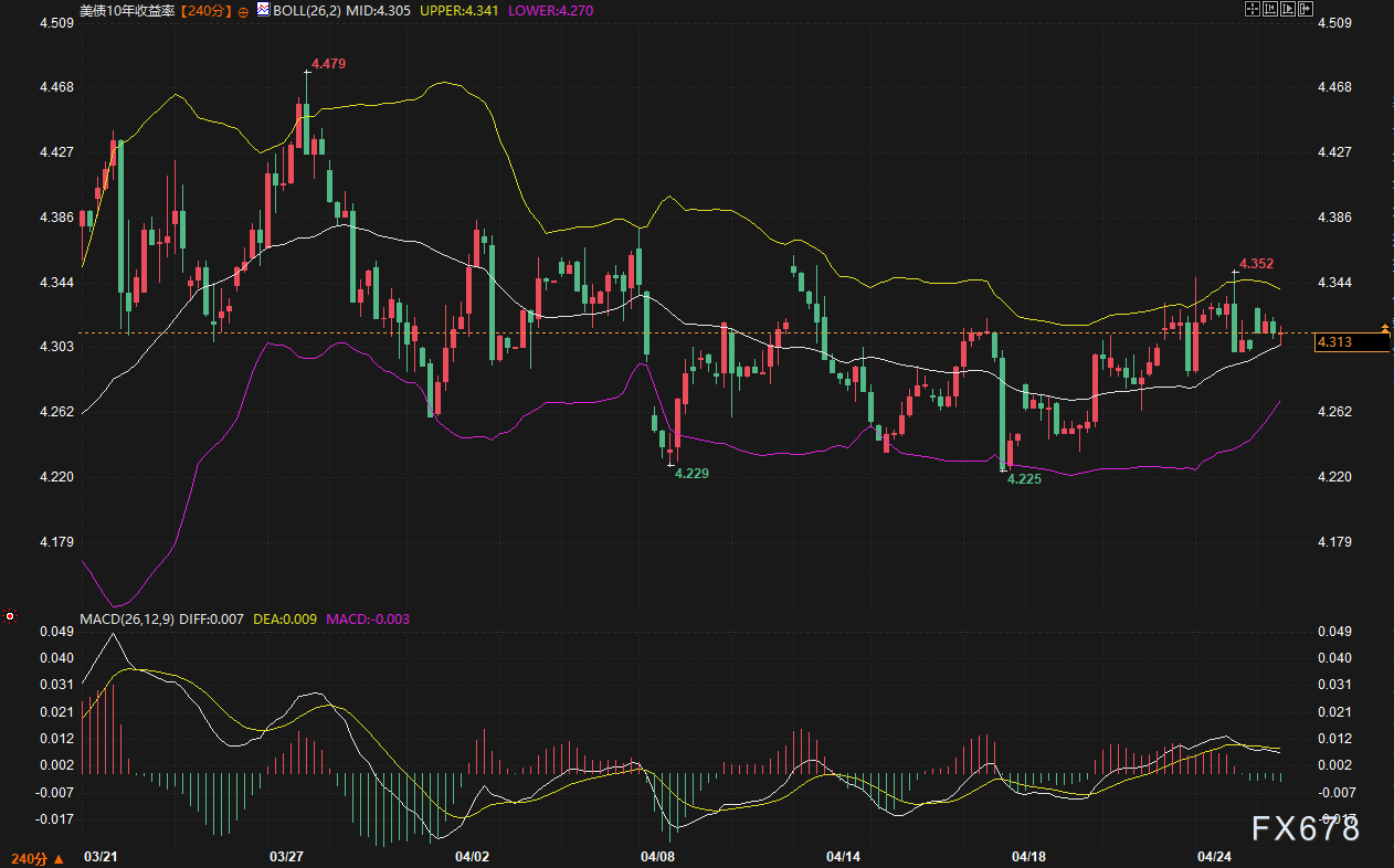 汇通财经APP讯——周一(04月27日),全球大宗商品与外汇市场在一种微妙的“静默”中开启了新的一周。尽管中东地区的俄乌局势与中东地缘博弈仍在牵动神经,但由于本周晚些时候美联储将召开货币政策会议(FOMC),市场参与者整体表现克制。目前,10年期美债收益率基本持平,美元指数在低位徘徊,现货黄金则在经历高位回调后试图企稳。