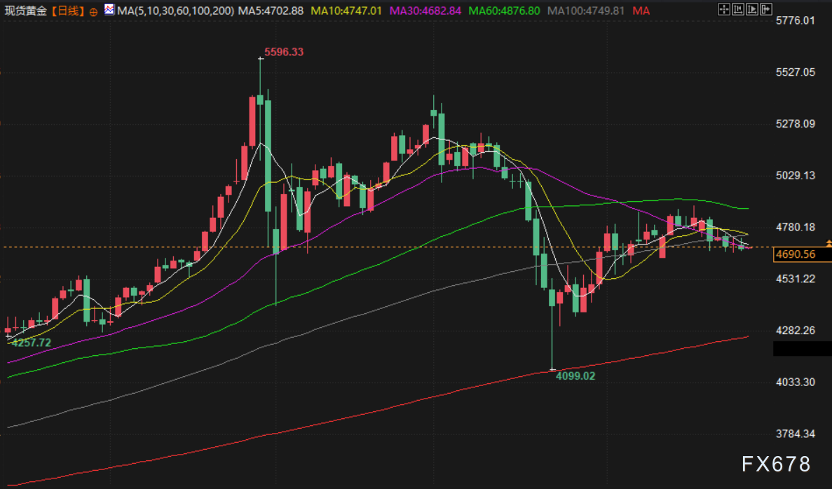汇通财经APP讯——周二(北京时间4月28日)亚市早盘,现货黄金交投于4690美元/盎司附近,金价周一小幅下跌,主要因结束美以对伊战争的外交进展停滞加剧通胀担忧,同时市场关注本周美联储及其他主要央行会议以评估战争对经济的影响;美原油交投于96.65美元/桶附近,油价周一创两周新高,美伊和谈陷入僵局及霍尔木兹海峡石油运输持续受限,导致全球供应紧张。