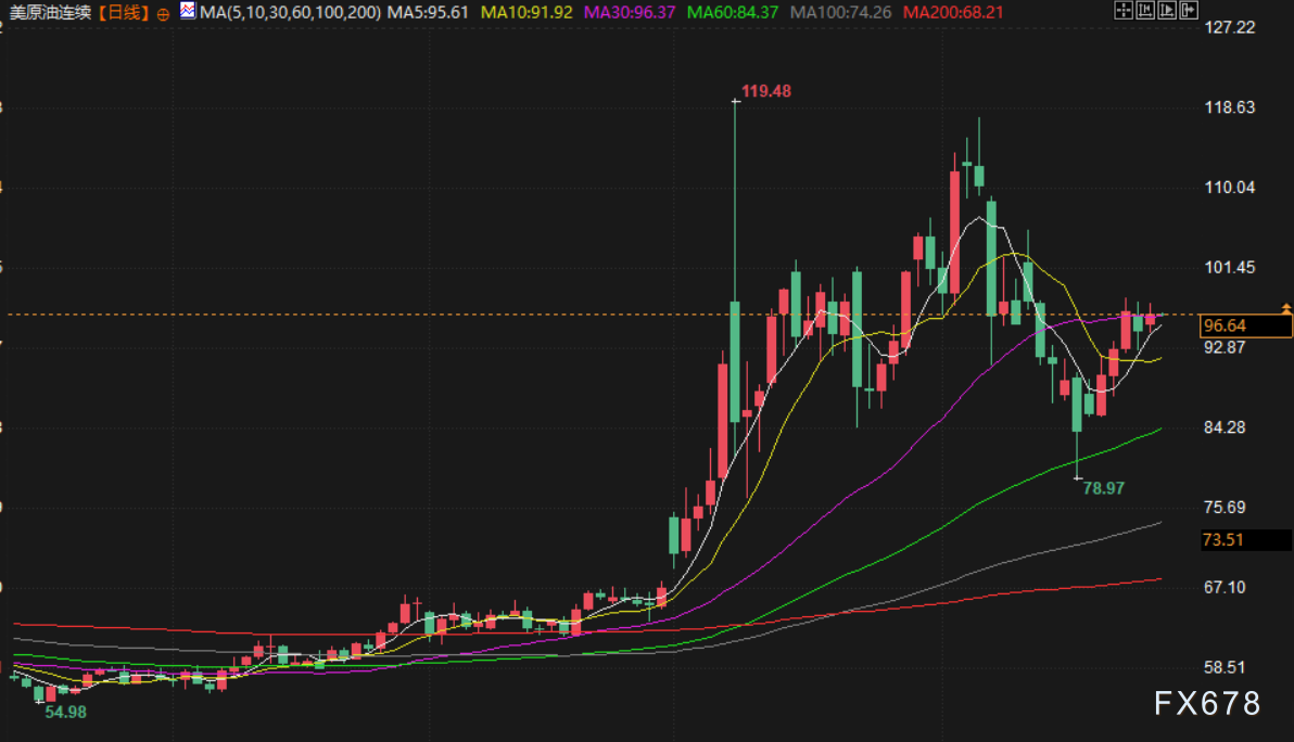 油价周一上涨约3%,创两周新高:布伦特原油期货收涨2.8%至每桶108.23美元,为连续第六个交易日上涨(2025年3月以来首次),美原油期货收涨2.1%至每桶96.37美元,主因美伊和谈陷入僵局及霍尔木兹海峡石油运输持续受限,导致全球供应紧张。