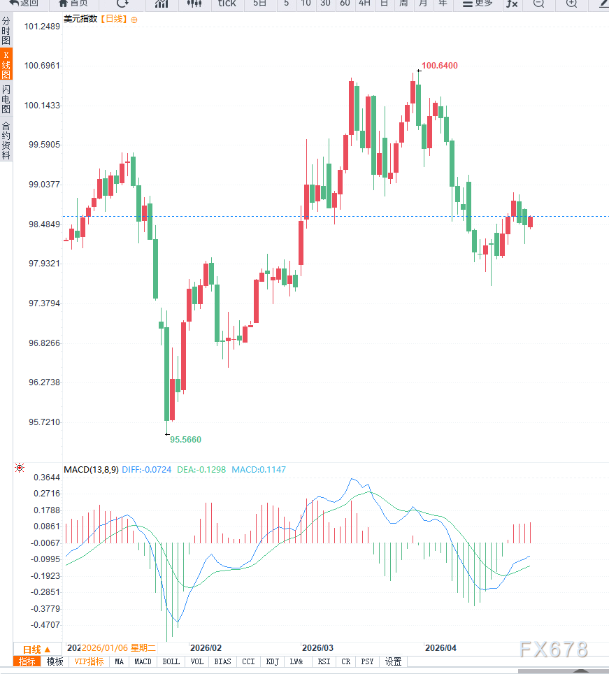 汇通财经APP讯——周二亚洲时段,美元指数止跌回升,重新站上98.50关口,结束此前连续两个交易日的回调走势。当前美元反弹主要受到避险需求支撑,同时市场在美联储利率决议前转入谨慎观望,使得汇价整体呈现企稳迹象。