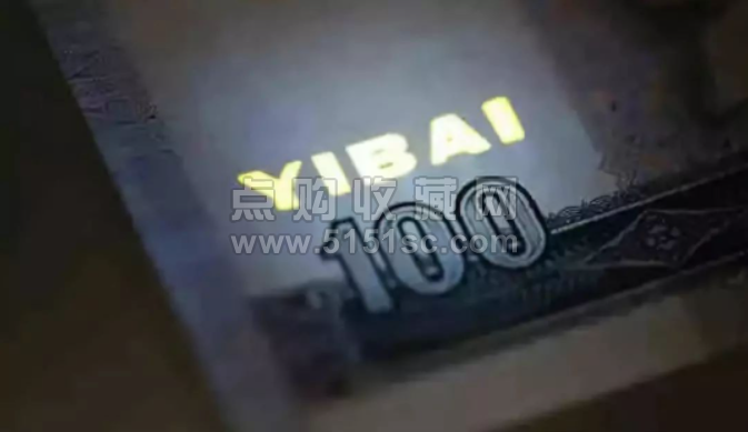 第一次使用无色荧光油墨。第四套人民币1990年版100元和50元券正面左侧上方“YIBAI”和“WUSHI”汉语拼音字母,右侧冠字号码上方“100”和“50”为无色荧光印刷。在可见光下看不见,在紫外荧光下为黄色。