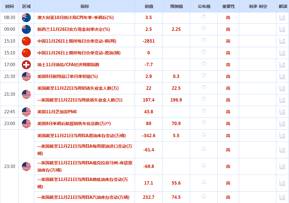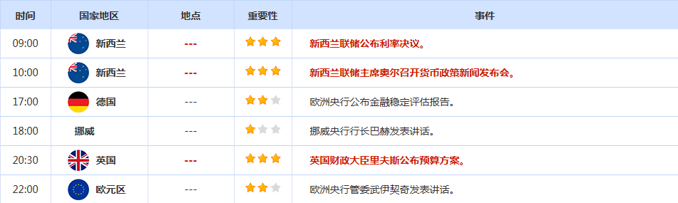 ATFX前瞻:本周即将发布的经济数据重要性由高到低分别为:感恩节休市、新西兰联储利率决议、日本东京CPI数据,接下来做逐一解读。 src=http://fxstg.pic.cnfol.com/20...