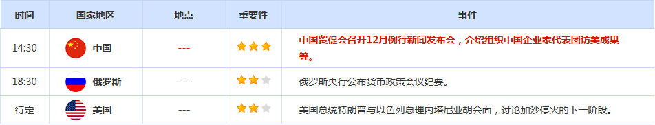 与此同时,市场密切关注俄乌和平进程,潜在的和平协议可能导致对俄罗斯石油行业的国际制裁被取消,从而影响全球供应格局。乌克兰总统泽连斯基计划于周日在美国佛罗里达州与美国总统特朗普会面,讨论结束战争谈判中的关键障碍。泽连斯基表示,双方已接近完成一份包含20点内容的和平框架和一项安全保障协议,并称“在新年之前可以决定很多事情”。他还表示,如果俄罗斯同意停火,他愿意就商定的和平框架举行全民公投。