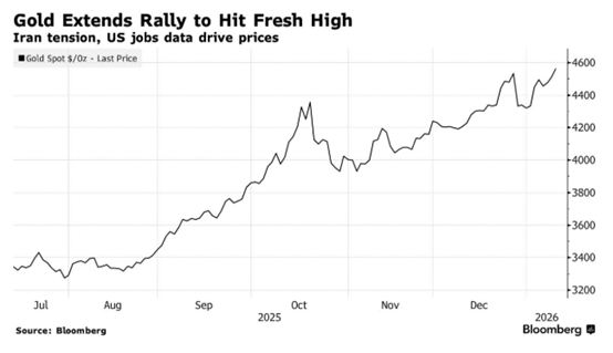 ATFX:周一亚市的黄金价格再创记录,今早跳空高开,将记录高位刷新至4600美元关口,尽管上周五公布的美国12月非农喜忧参半,美联储基本可以确定1月不会降息,但是市场保留年内至少降息两次的预期。此外,...