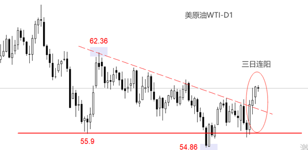 ATFX:过去三个交易日,美原油WTI罕见出现连涨走势。1月8日,WTI开盘价56.25,盘中冲高至58.59美元;9日,涨势延续,WTI最高触及59.58美元,距离60美元关口一步之遥;昨日,美原油并未选择向上突破,而是在60美元关口下方继续试探,最高触及59.71美元。